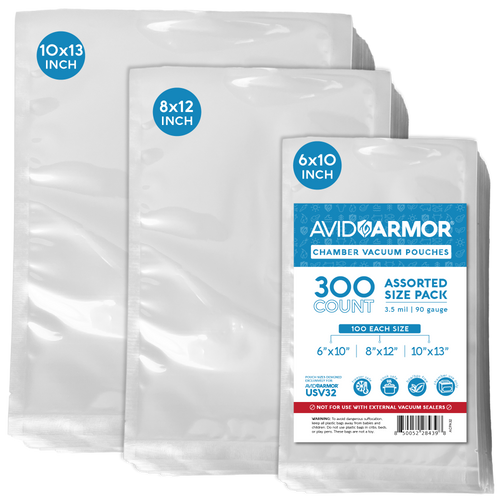 Keep food fresh, reduce waste, and streamline your kitchen routine with Avid Armor’s Assorted Size Pack of 300 Chamber Vacuum Pouches. Designed for both everyday and bulk food prep, this set offers the perfect mix of sizes, strong sealing performance, and long-lasting protection.